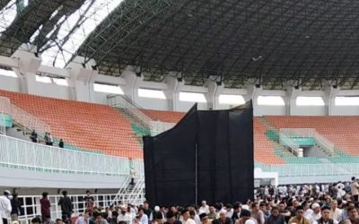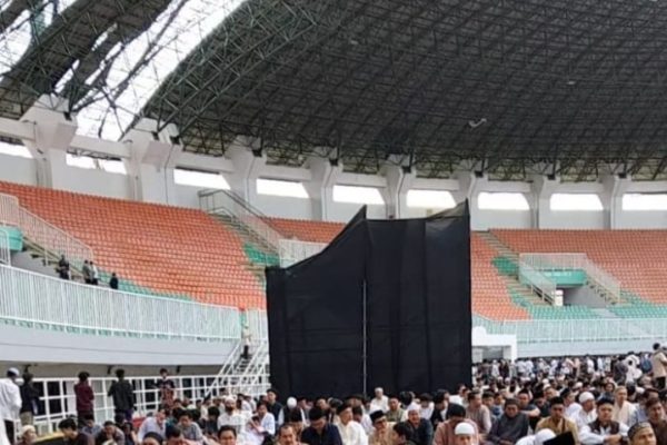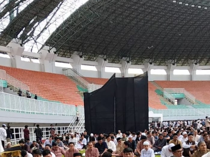 Ironi Idul Fitri di Pakansari : Ribuan Jemaah Bersujud Di Bawah Bayang-Bayang Atap Stadion yang Keropos