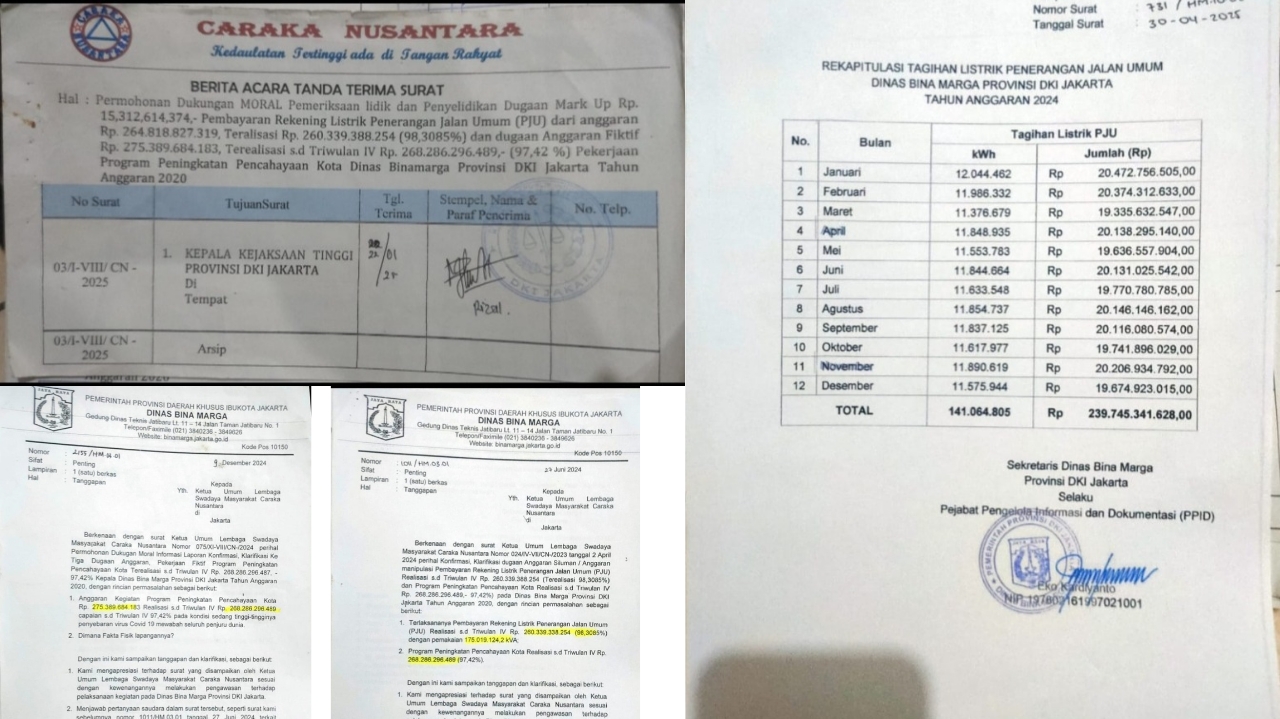 Kejaksaan Tinggi DKI Jakarta Diduga Peti Es Kan Surat Laporan LSM Caraka Nusantara Terkait Dugaan Mark Up Pembayaran Rekening Listrik PJU Di Dinas Bina Marga