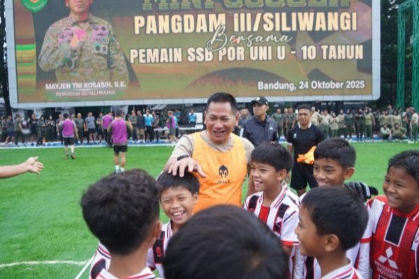 Bandung.bentengkeadilannews.com. Kodam III/Siliwangi menggelar pertandingan mini soccer persahabatan antara Pangdam III/Siliwangi Mayjen TNI Kosasih, S.E., bersama jajaran pejabat Kodam III/Siliwangi melawan tim SSB POR UNI U-10, di Lapangan Prajurit Kodam III/Siliwangi, Jalan Aceh No. 69, Kota Bandung, Jumat (24/10/2025). Kegiatan olahraga bersama tersebut berlangsung meriah dan penuh semangat kekeluargaan. Tim SSB POR UNI U-10 yang…