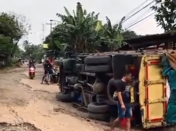 Bogor.bentengkeadilannews.com. Tidak kunjung diperbaiki, jalan di Kampung Balekambang, Kecamatan Jonggol, Kabupaten Bogor, Jawa Barat, rusak parah sepanjang -+ 13 km.jalurnya berlubang hingga sebuah truk terguling ,tak sedikit pengendara menjadi korban terperosok ke lubang jalan Milik Pemerintah Kabupaten Bogor ( Pemkab ).